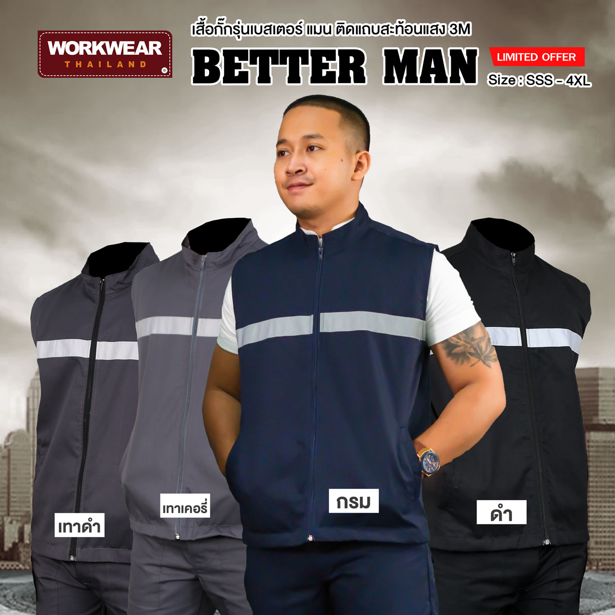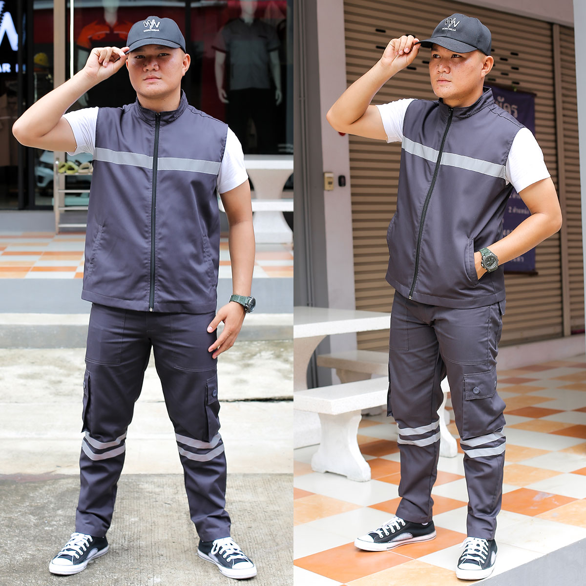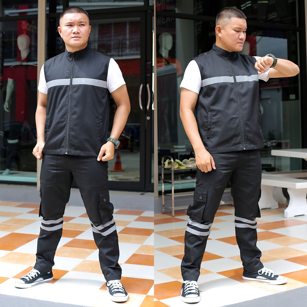 ชุดเซ็ตเสื้อกั๊ก รุ่น BETTER MAN & EXPRESS เสื้อกั๊กและกางเกงกระบอกเล็กขายาวติดแถบสะท้อนแสง 2 แถบ